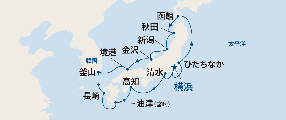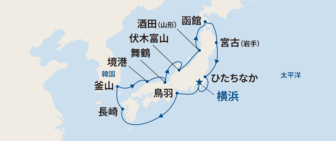 2026 年日本発着クルーズは、横浜を母港として、四季折々の風情や日本の伝統と現代性を感じながら日本の魅力を再発見できるクルーズをご用意しています。 2月~11月にかけて全28コースを就航します。3 月から 4 月にかけては、桜の開花を楽しむコース、 8 月には各地で開催される日本の伝統的な夏祭りを堪能できるコースも設定しております。