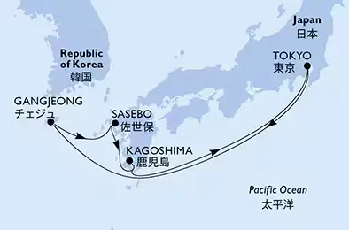 東京発着の西日本・済州島を巡るクルーズ航路です。