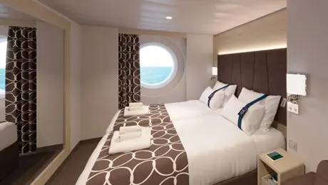 ※お子様がいる場合などはご希望により写真のように2台を繋げてキングタイプでもご利用可能です(乗船後の変更も可能)