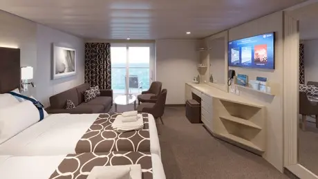 象徴的なY型の船尾から続く全長104mの屋外プロムナードからは素晴らしいパノラマのオーシャンビューをお楽しみいただけます。このプロムナードには、記録破りの洋上最長スライダー、ヴェノム・ドロップ@ザ・スパイラルがあり、デッキ20からデッキ8までの約75メートルを一気に降りる超巨大滑り台が楽しめます!